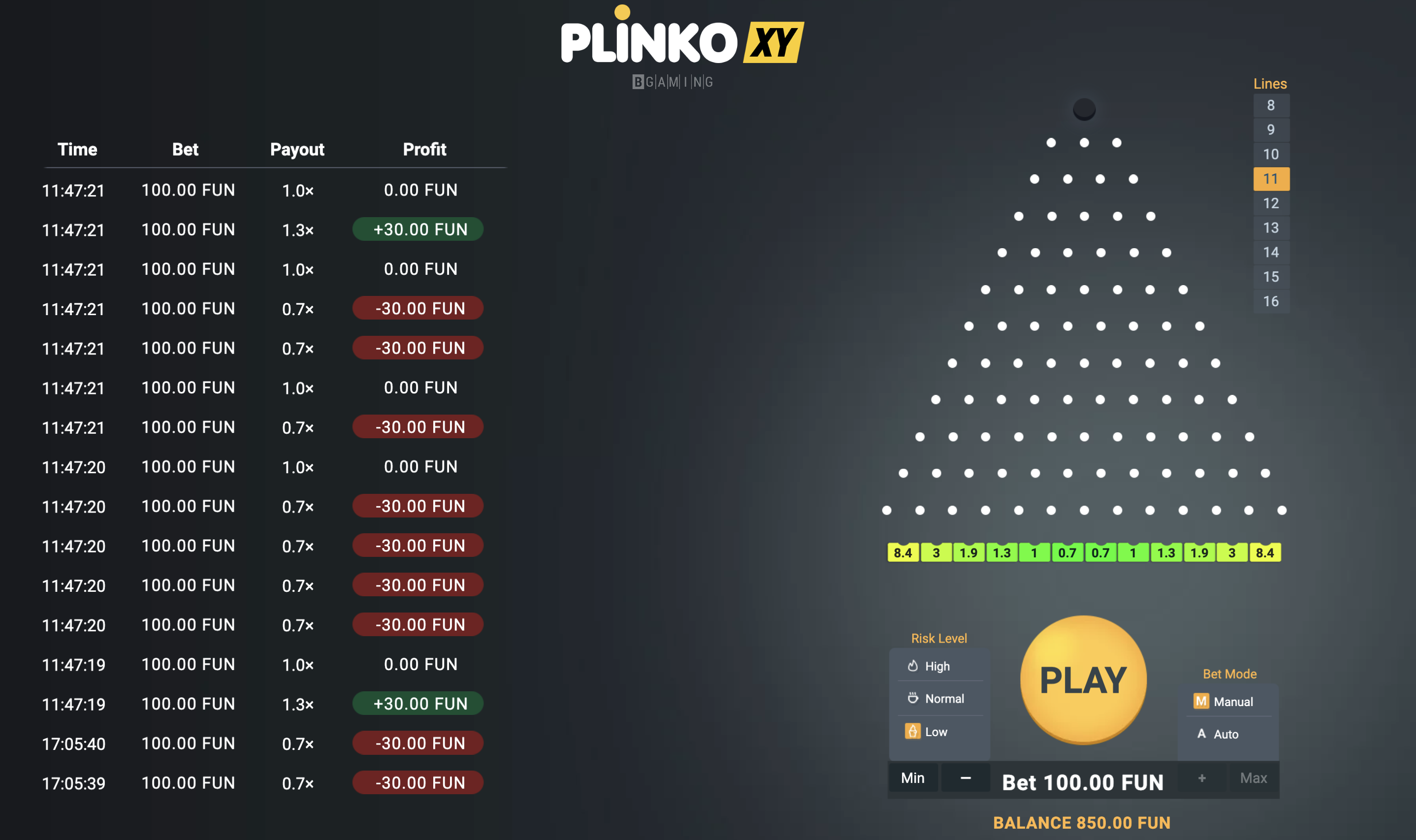 Почему Plinko? Потому что это выдающаяся online-игра. Она является по-настоящему азартной и непредсказуемой. Никто не знает, сорвет игрок куш или потеряет деньги. Элемент непредсказуемости гарантирует незабываемые эмоции и впечатления. А еще адреналин. От каждого нового игрового раунда! Управляйте риском, выбирайте уровни препятствий, делайте ставки. И наблюдайте за счастливым шариком в 1xBet.